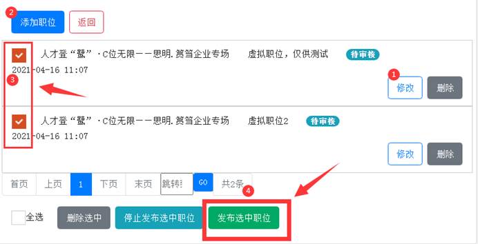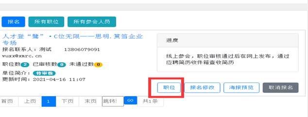 7.如有职位信息需要变更或想添加其他新职位,可点击↓下图红框内“职位”二字。