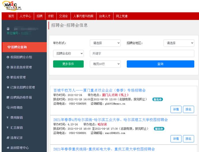 1.参会企业使用厦门人才网的企业会员账号登录。如尚未注册,需先注册,按照要求上传经办人身份证及授权委托书,并在备注里填写招聘会【校园、网络】,待人才网工作人员审核通过后即可,无需缴交任何费用。