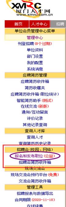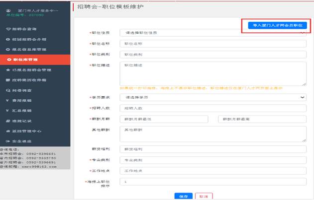 职位库管理操作同上。如本身已是厦门人才网年费会员,也可以直接导入企业在厦门人才网上发布的职位。
