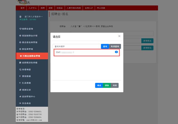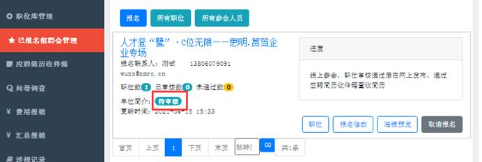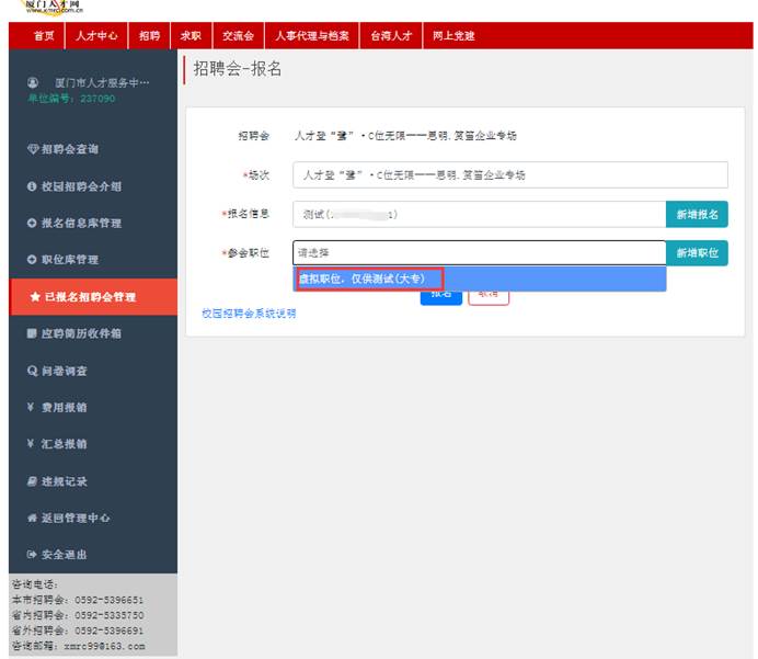 3)首次参会需要先维护一下报名信息库和职位库。打红色星号的都要填写。