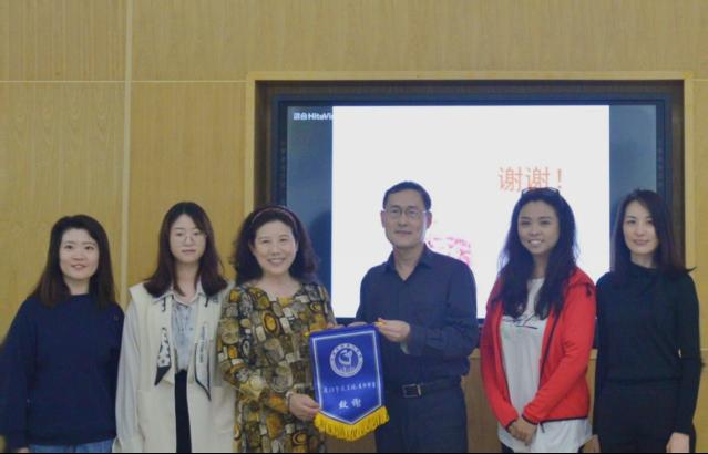 讲座最后,我校通识课程建设委员会主任刘海翔教授为谷玉梅教授颁发致谢旗。