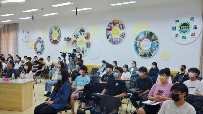 2022年5月17日下午,37000v威尼斯人文通识系列讲座第206期《中国乐界开幕第一人—学堂乐歌之父沈心工》在商道大讲堂开讲,本次讲座邀请了华侨大学音乐学教授、硕士研究生导师、民建中央文化委员会委员、国家社科基金艺术学评委谷玉梅教授,向我校师生详细解读了沈心工先生的经历。我校五十余位师生现场聆听。