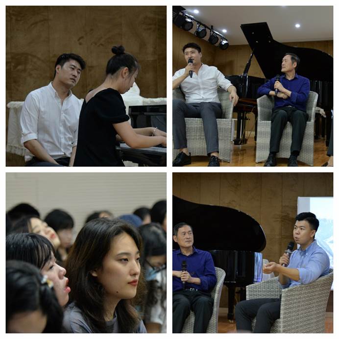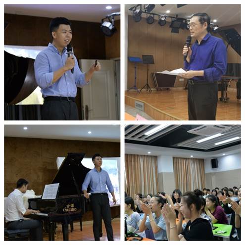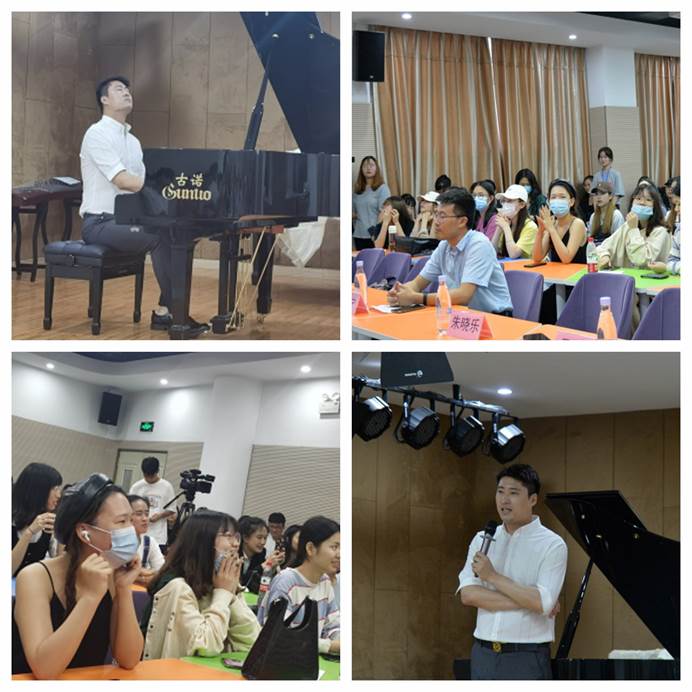 随后,毕业于乌克兰敖德萨乌什斯基师范大学音乐艺术学专业的吴轩博士讲述了乌克兰的风土人情,包括乌克兰的地理位置、军事科技、教育制度、旅游与美食等,还介绍了乌克兰艺术学院的培养方式与学院环境,其美丽的欧式建筑、典雅的艺术氛围令人神往。在主题发言结束之后,朱晓乐、吴轩博士合作表演《唐璜》,悠扬的琴声与优美的歌声,再次将论坛氛围推向高潮。朱晓乐博士还邀请同学进行现场教学示范,并对他们的演奏给出指导性建议。他认为,高雅艺术其实离我们很近,只要有执着的热爱和刻意的练习,就可以不断进阶并享受到钢琴艺术的美好。