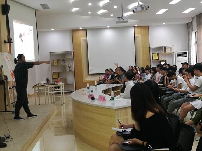 9月24日下午,37000v威尼斯人文通识系列讲座第171期《腹有书画气自华》在商道讲堂开讲,本次讲座邀请职业画家陈伟立先生为广大师生讲述中国传统文化与国画的审美关系、中国画的精神内涵等书画知识,我校100多名师生到场聆听。