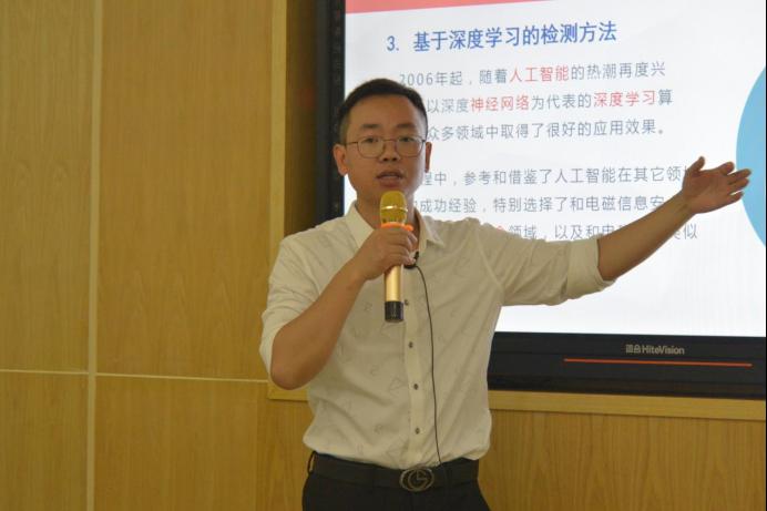 讲座伊始,茅剑老师先是从信息安全关乎国家安全,电磁信息安全是信息安全的重要课题,电磁信息安全威胁以及国内外研究现状四个方面出发,层层递进引出信息安全的意义,随即向同学们介绍了电磁信息泄露产生的机理和电磁信息泄露的类型,点明同学们的信息或许在不经意间就已泄露。紧接着,茅剑老师以信息泄露检测为题,简要概括了多种检测方法。最后茅剑老师提到电磁信息泄露不容小觑,向同学阐述了电磁信息泄露防护各式各样的手段。茅剑老师激情的讲解与热情的互动获得在座师生一致好评。