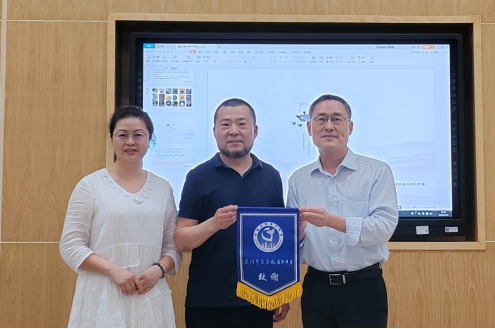 讲座结束后,我校通识教育课程建设委员会主任刘海翔教授为殷露老师颁发致谢旗,并合影留念。