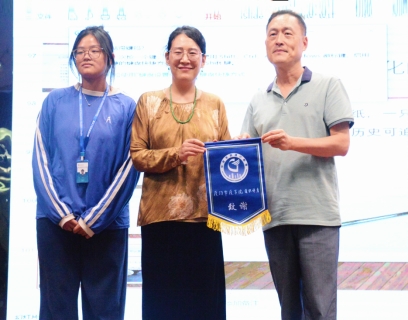 讲座结束后,我校通识课程建设委员会主任刘海翔教授为赵英女士颁发致谢旗,学校茶艺协会指导老师及成员与主讲人合影留念。