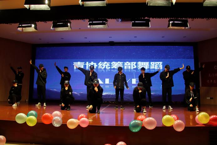 一段动感十足的啦啦操表演拉开了本场晚会帷幕;晚会现场带来舞蹈《Adventure》、话剧《献血》、歌曲《好像掉进爱情海里》、手语表演《感恩的心》等精彩节目,让在场的师生感受青春似火、青春无悔的志愿心。最后,晚会在校青协会长余传钊、副会长王诗雨两位同学精心准备的合唱中圆满落幕。