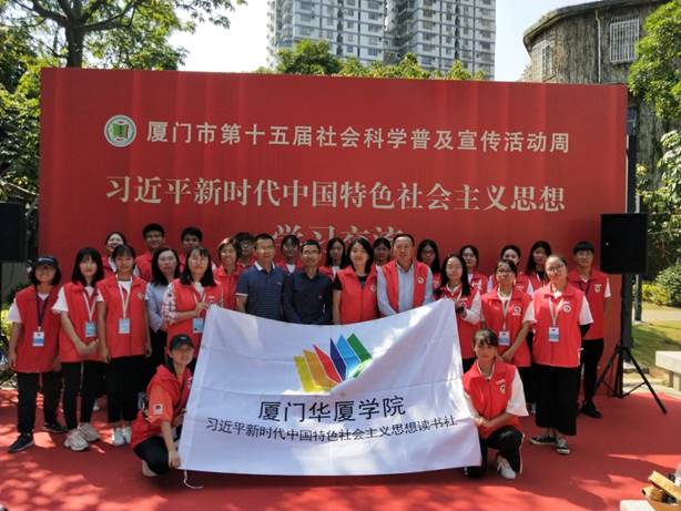 10月19日上午,厦门市第十五届社会科学普及宣传活动周启动仪式在厦门市中山公园举行。本次活动的主题为“礼赞新中国奋进新时代”。学校思想政治理论教学部、团委、行政党总支第三党支部及习近平新时代中国特色社会主义思想读书社100多名师生参加了启动仪式。仪式上,我校艺术团管乐团演奏了《爱我中华》,用慷慨激昂的旋律奏出华厦学子对伟大祖国的热爱。