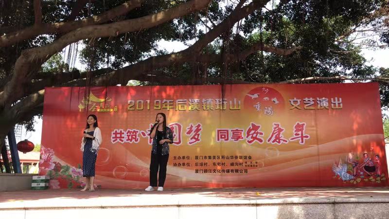 为庆祝新中国成立70周年,弘扬敬老尊贤、和谐邻里的优良传统,10月8日,受崎沟社区邀请,我校歌手队代表参加了由集美区珩山华侨联谊会主办的“党建引领孝文化,和睦邻里创和谐”活动——2019珩山重阳节文艺演出,并献唱歌曲串烧《温暖》。