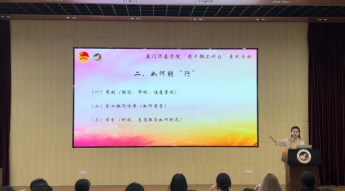 刘睿老师向同学们阐述学生干部是推动学生组织建设的骨干与核心,作为学生干部,一方面要学会“三思而后行”,另一方面,要做到“两个结合”。刘老师以“一二九”合唱为例介绍了举办活动的要点,校园活动不仅是同学们喜闻乐见的,还要有一定的站位高度,要考虑活动举办的教育意义、教育目的、预期效果和是否有持续性。