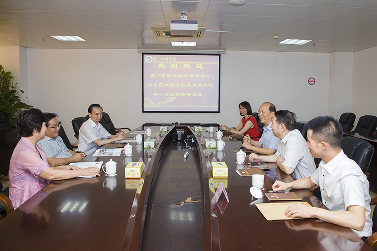 7月17日上午,厦门市政协副主席黄国彬、翔安区政协原副主席邵文化、市政协社会法制(民宗)委主任王丽玲等一行莅校考察指导工作。学校董事会魏刚董事长及校领导热情接待和陪同。
