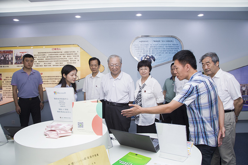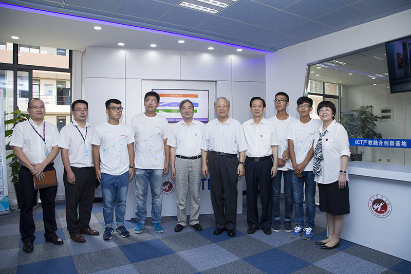 会后,路甬祥副委员长一行还实地参观了学校的应用技术展厅、教育部-中兴通讯ICT产教融合创新基地等。参观过程中, 路甬祥副委员长与学校ICT产教融合创新基地的企业驻校工程师及学生亲切交流,他深情勉励学生要积极拥抱新技术革命,勇于创新、敢于创业,争取能涌现出马云、马化腾式的人物。