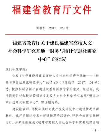 中心于2017年12月由福建省教育厅批准成立,旨在推动我国的财务与审计信息化理论研究与应用研究,建立具有区域经济特色的应用研究案例库,培养财务与审计信息化应用人才。